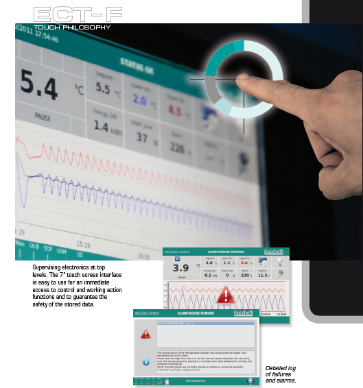 El display táctil de 7″ ofrece gran simplicidad de uso, ofreciendo inmediata disponibilidad a todas las funciones de control y comandos y permitiendo una rápida consulta de los datos registrados: