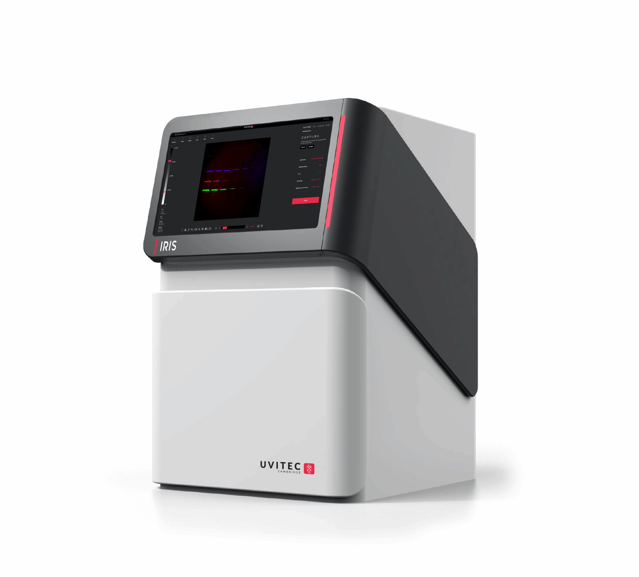 El UVITEC Alliance IRIS es la solución puntera de Uvitec Cambridge para analizar Western blots con precisión y eficiencia. Equipado con una lente de gran apertura f/0.75, cámara de alta resolución (9,2 Mpx y hasta 65 535 niveles de gris), rango dinámico OD 4,8 y refrigeración Peltier a –30 °C, asegura una detección ultradébil sin ruido de fondo.