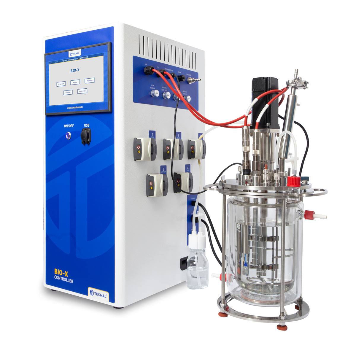 • Controles: temperatura, pH, O2 (óptico), CO2 disuelto, espuma, presión, agitación, torque, aireación