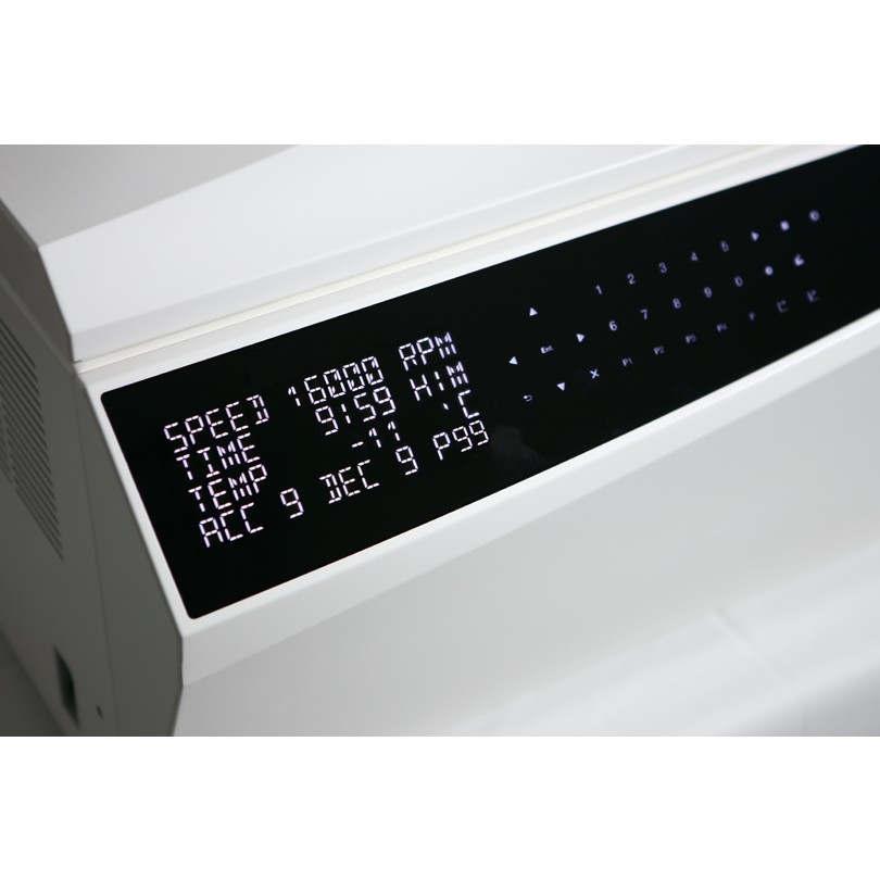- Refrigeración libre de CFC con intervalo operativo –20 ºC hasta 40 ºC. Gracias a que posee un potente sistema de refrigeración, el tiempo necesario para alcanzar la temperatura deseada es mucho menor que con otras centrifugas del mercado, con lo que la centrifuga esta antes lista para su uso