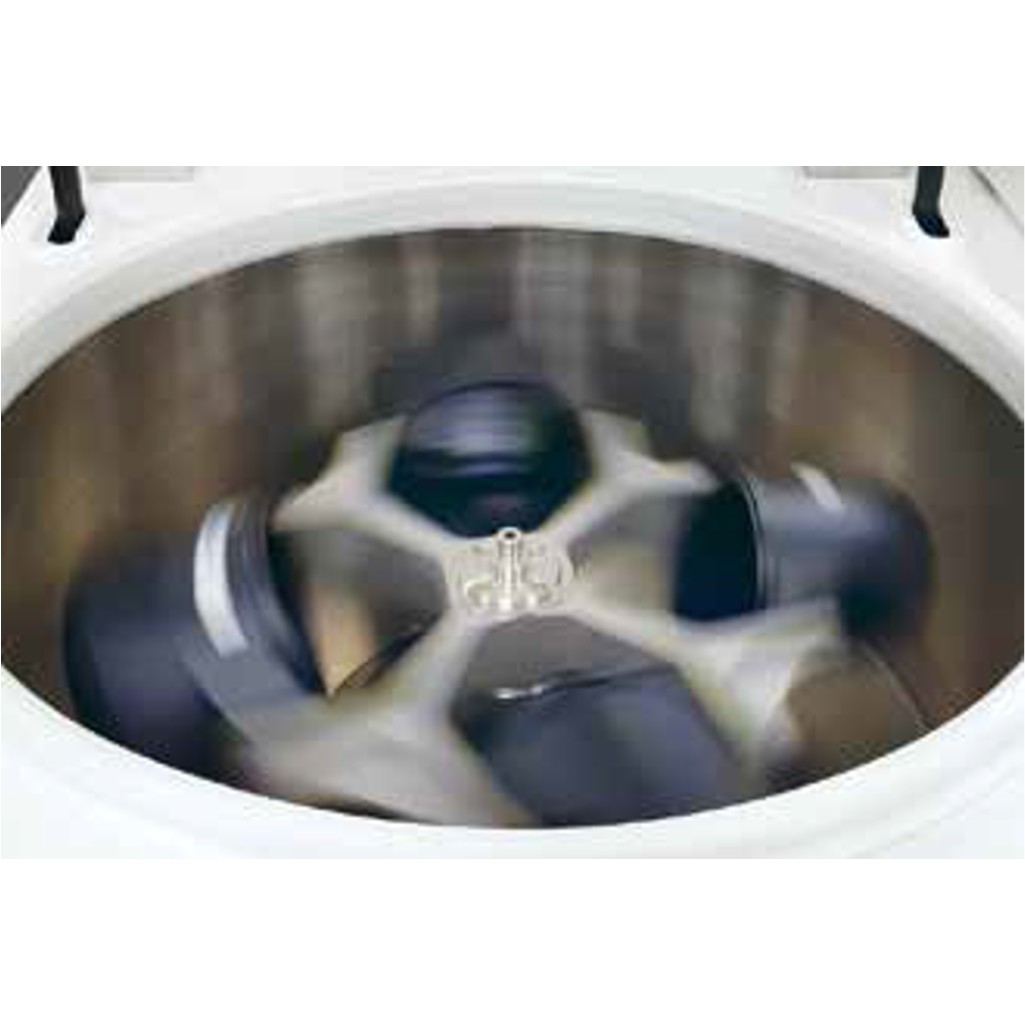 - Posee un accionamiento de inducción, controlado por frecuencias, esto significa unos centrifugados silenciosos y suaves, mientras los tiempos de aceleración y frenado son cortos. El accionamiento no necesita mantenimiento. Queda suprimida la engorrosa sustitución de las escobillas de carbón y la formación de polvo.