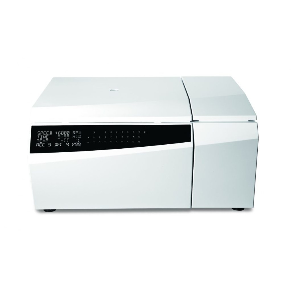 - Es de alta velocidad en rotores fijos para las separaciones exigentes, ya que alcanza con rotores de angulo fijo de 6 x 100 ml 10.000 rpm , 8 x 50 ml a 12000 rpm,etc..