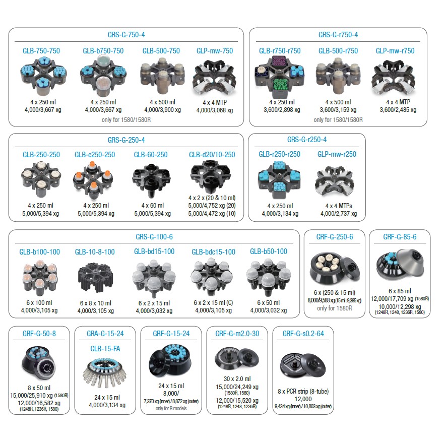 - Es de capacidad media-alta en rotor oscilante de baja velocidad , por su elevado numero de tubos que es capaz de procesar en su rotor oscilante hasta las 4000 rpm los 4 x contenedores o buckets rectangulares de 250 ml con una amplia gama de portatubos autoclavables , tambien buckets para microplacas con capacidad hasta 16 microplacas ( o 4 deepwell ) tambien a 4000 rpm completan y cubren un mayor de aplicaciones de centrifugacion.